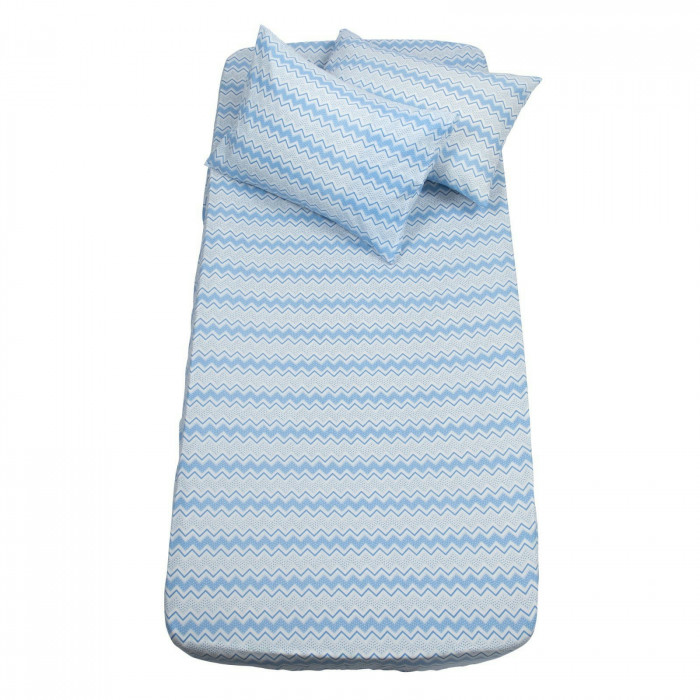 Kumaş Lastikli Çarşaf Takımı Açık Mavi Zikzaklı - 140x190